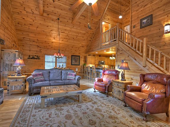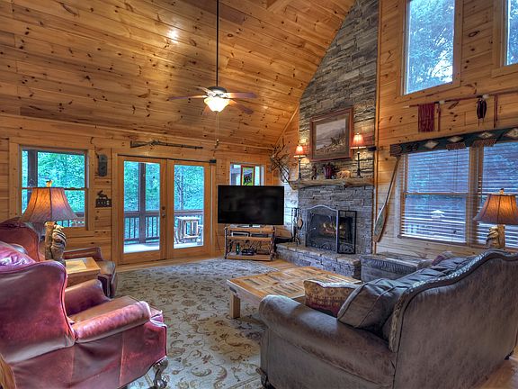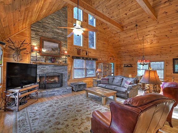 OVERWHELMING MOUNTAIN VIEW FROM ALL THREE FLOORS of this 3/2 cabin loaded with warmth and charm and in EXCELLENT CONDITION. You can have it all - PRIVACY AND ACCESSIBILITY - ONLY 1.5 MILES TO BLUE RIDGE CITY LIMITS. Enjoy Lake Blue Ridge/Toccoa River from this mountain retreat at the beginning of the Aska Adventure Area. You won't find this many places - SUPER HIGH SPEED INTERNET available with ETC Ignite 150 mb. Gated private road, whole house generator, whole house water filtration system, covered parking for 2 vehicles & additional space for many more, wood burning fireplace with gas starter and HUGE supply of wood, ADT security. Fully furnished, turn-key home with remarkable custom furniture and decorations, many handmade. Never been a rental cabin.