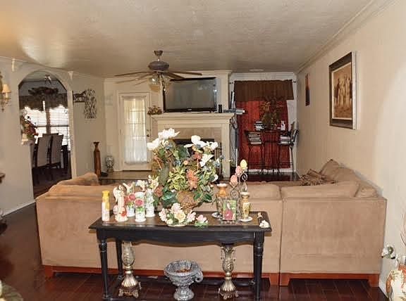 Beautiful 4 bedroom 2 bath home with beautiful upgrades throughout. Crown Molding, laminate floors, arched door ways. Separate laundry room, Formal dining room with additional eat in kitchen. Beautiful landscaping with fruit trees in the backyard. Storage building, gas logs, blinds, sprinkler system and landscaping lights all to convey.