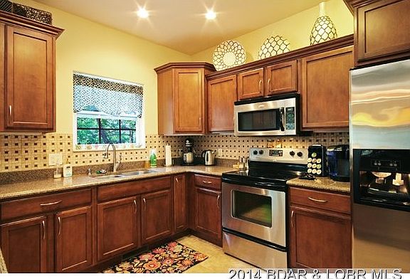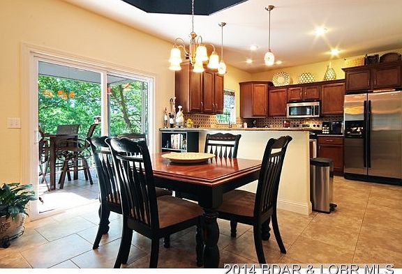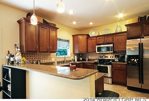 Gorgeous home in highly desired neighborhood with upgrades galore! Rich hardwood flooring recently installed in living room. Beautiful quartz counter tops were recently installed as well. Freshly painted, this spacious home has a cozy stone fireplace, stainless appliances, updated light fixtures, pantry and master suite with jetted tub, walk in shower and 2 additional bedrooms on the main level. Upper level screened deck off dining area and large open deck. Lower level boasts game area, family room, wet bar, office and additional bedroom and bath. Large storage area as well. Close to swimming pools, tennis courts, bocce ball and community park. Stocked fishing lake and the Lake of the Ozarks just a short walk away. Wildlife abounds.