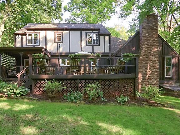 English Tudor nestled in Stunning setting that is beautiful, private and quiet. Hear the sounds of nature? Beautiful home has Four Bedrooms, A second-level upper Bonus Room, two full bathrooms and one half bathroom on the main level. Kitchen is large, eat-in with table space. Ceiling fans and shade trees keep house cool in summer months without the extra expense of air-conditioning. Wood-stained trim is maintenance free and casts colors of comfort. House is two living levels Plus large unfinished attic area Plus large unfinished lower level with covered walk-up stairs to back yard. Lawn area is complete with Fire pit and expansive Deck. Family Room perfect with wood burning fireplace and large enough for gatherings. Newer windows 2015 and 2018, newer doors. Shed included. Convenient to shopping, restaurants, medical, schools and libraries.