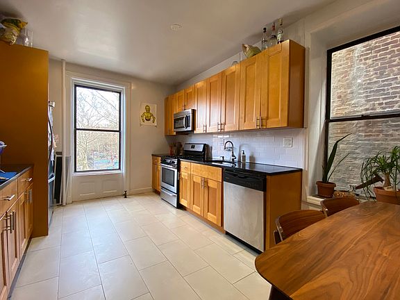This apartment truly captivates Brooklyn's charm. Its stunning living room with high ceilings and three beautifully exposed windows brings natural peace. Featuring a large dine-in kitchen with marble countertops, dishwasher, and bright sunlight. Through the wide hallway you'll find two full bathrooms and five spacious and uniquely designed sun filled bedrooms with a closet that provides overhead storage. This location can't be beaten. One block away from Fort Greene Park, surrounded by some of Fort Greene's finest local restaurants,( Miss Ada, Walters, and Olea to name a few) not to mention Bittersweet coffee shop and laundry directly around the corner. Close to multiple transportation options (G, B, D, N,Q, R, W, A, C, B38 ), Whole Foods 365, Trader Joe's, Target and the multiple shopping and dining options at Dekalb Market.