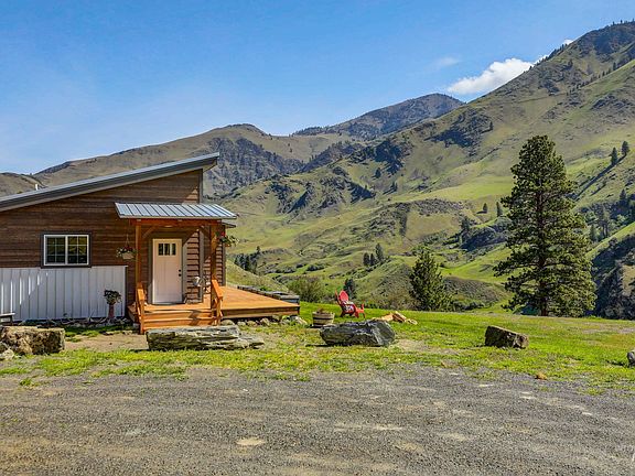 This AMAZING 2.29 acre Salmon River Canyon property offers plenty of room for friends & family w/ great big VIEWS. The 1008 sq ft warm & inviting main cabin boasts 1 bedroom, 1 bath & a den. The living space is tastefully finished with shiplap interior walls, high-end appliances, rustic lighting, copper farm sink, butcher block counter tops, kitchen island, laminate flooring, Blaze King woodstove and ductless heating and cooling. The bedroom and bathroom offer a walk-in tile shower, copper clawfoot tub and utility space. This property also features a newly finished 480 sq ft studio guest cabin w/ a kitchen, newly finished bathroom & a full RV hook-up just outside. RV friends can enjoy the adorable 10x10 bathhouse equipped w/ a shower, vanity & a washer/dryer hook-up. Plenty of room to park your toys in the 24x34 garage/shop w/ a roll up door. 1 acre hot wire fenced for livestock. (Extra den not imaged, updated pictures coming soon!). Shared well. Excellent location close to Riggins & the Salmon Rivers. BTVAI.