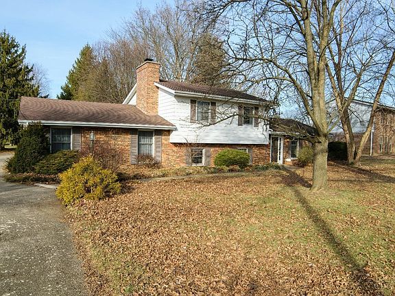 Tri-Level with private 1.12 acre tree'd lot. 2 car attached oversized garage and 2 car detached oversized garage with 2nd floor storage in rear. Large enclosed patio with pergola over patio. Inside has large family room with brick wood-burning fireplace (Newer damper and tuckpointing). Newer kitchen and appliances. Some newer carpet. Anderson windows. -furnace, HWH and 1/2 bath all updated in last 5 years Water softener installed.