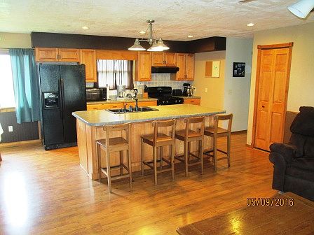 Open Floor Plan. Beautiful, Newer Maple Kitchen, Island with Sink, Dishwasher, & Storage. Large & Small Pantries. Good Size Closets in Bedrooms with Built in Organizers, Loft & Bunk Beds in 2 Bedrooms will remain. Newer Laminate Flooring throughout & Six Panel Doors. Family room with Brick Fireplace. Finished Room + Abundant storage in Basement. 2.60 Private, Partially wooded acres. Storage Shed.
