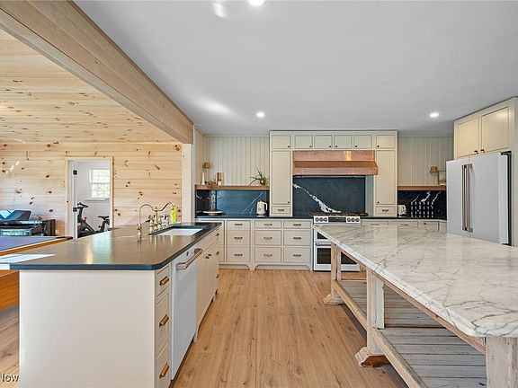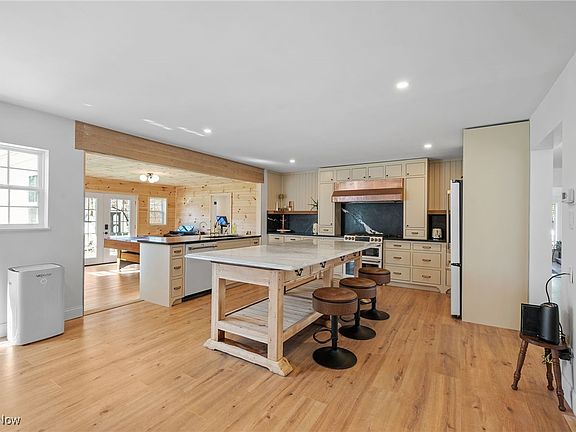 Welcome to 186 Eldridge Rd, a lovingly updated ranch-style home that blends charm, space, and modern functionality—right in the heart of Aurora. This 2,375 sq ft home sits on nearly half an acre of flat, tree-lined land in a quiet neighborhood just minutes from top-rated schools, parks, and shopping. Inside, you’re greeted with refinished hardwood and parquet flooring (2023), new floating floors in the main living areas, and a fresh, cohesive feel throughout. The kitchen was fully remodeled in 2024, featuring custom cabinetry, marble countertops, new appliances, a reverse osmosis system, and a stunning custom vintage island that’s both functional and full of character. Just off the kitchen is a remodeled butler’s pantry and a bonus knotty pine flex room—perfect for a home gym, game room, or studio—with direct backyard access. The primary suite includes a remodeled bath (2024), new lighting, added closet space, and French doors that open to the yard. The half bath and laundry were also updated in 2024, and all three toilets were replaced. A back mudroom was transformed into a workout room or office, and fresh paint and wallpaper removal gave the home a bright, modern refreshed look. New windows and doors were installed in 2024, especially in the living room and sunroom, to maximize natural light and views of the spacious backyard. The shed was updated with a new roof and paint, the invisible fence reactivated, and a portable pet fence added. Even the landscaping was refreshed in 2024 with new mulch. You'll love cozy nights by either of the two fireplaces, peaceful mornings on the back patio, and the easy single-story layout this home offers.