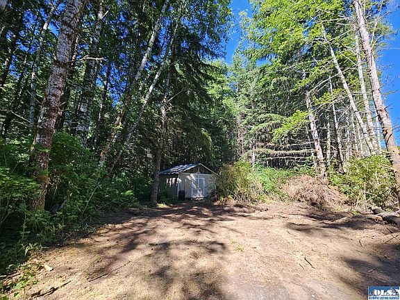 Tranquility and peace combined with ferns and fir trees on this majestic 6 plus acre property with off-grid cabin! 20x16 storage building with well-maintained trail to interior of property where the cabin resides. Heavily treed acreage lightly sprinkled with huge stumps from long ago logging are interspersed along the trail creating a stately and sovereign journey through the property. Perfect for weekend retreats to unplug or bring in the utilities and build at your leisure. No CC&R's, No HOA's.