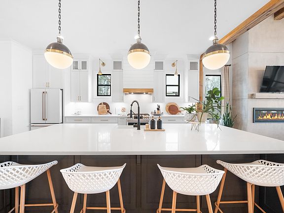 - Beamed Ceilings, Chandelier, Kitchen Island, Pantry, Solid Surface Counters, Vaulted Ceiling(s), Walk-In Closet(s)