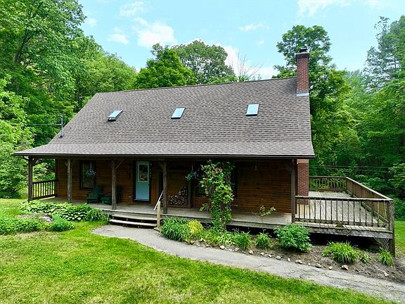 Nestled in the peaceful countryside, this beautifully updated 3 bedroom, 2 bath open floor plan home offers the perfect blend of privacy and convenience. Set on 3 wooded acres you’ll enjoy a serene setting just 5 minutes from major highways and ideal easy commute to the 5-college region. Step inside to discover a bright, open floor plan featuring brand new flooring, modern appliances, new sky lights and stunning, fully renovated bathrooms. The heart of the home is a welcoming living area where you can cozy up to a wood stove during the chilly New England winters. The walkout basement is already insulated and sheet-rocked ready for your finishing touches and includes a second wood stove. Whether you envision a home office, gym, or family room, the possibilities are endless. The house is rough piped for a built in vac., and the roof is 2 years old. Make this your dream home today. Highest and best offers by Tuesday June 17, 2025 at 3pm. No escalation clauses or personal letters.