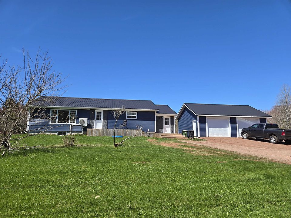 Here is a very nice 3 bedroom bungalow in a great location. This bungalow with a new 2 car garage that sits on 3.4 acres just in the Howlan Road from Highway 2. The home is heated with heat pumps and radiant electric rads. There is a new 200 amp. electric panel and there is insulated basement walls in the wide open basement which is potential more living area if needed. Home has had lots of updates in the past 3 years like steel roof, vinyl extension, vinyl windows and doors, flooring, bath, and more. This home is close to golfing, schools, shopping and more.