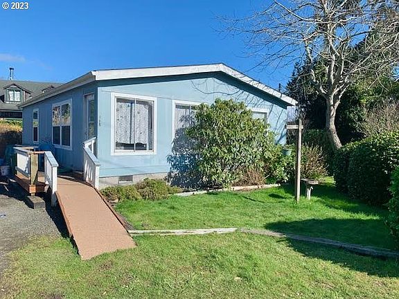 Great size manufactured home on its own property! Light & bright w/ vaulted ceilings. Spacious kitchen w/ plenty of cabinet space & fridge included. Owners bed w/ bathroom. Separate laundry room w/ exterior access. Accessible ramp to front door. Pull through driveway. Large yard w/ lush grass, plenty of room to garden & room for furry friends to run. Fridge/Blinds stay. Tsunami/hurricane/wind proof anchors.