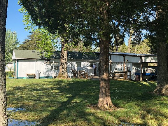 Darling 2/1 house and 23ft Hybrid Coyote Camper with adjoining 16x32 deck with built-in seating. 1 Acre FLAT 2 lots on a corner with a large barn (24 ft boat will fit). Main Bedroom has 2 windows and accommodates a Queen size bed. Second bedroom has bunk beds, perfect for kiddos. Full bath with double sinks and full sized stack washer and dryer. Just down the hall is the eat in kitchen and living room. Granite counters, dishwasher, gas stove, microwave and full sized refrigerator. Granite island that seats 4. The camper is covered with a permanent metal roof large enough to cover both ends when extended. Sleeping room for 7 (2 queen beds, 1 full and 1 couch that converts into an oversized Twin). Camper has both heat and AC. 1/2 bath. Back yard is like a park. Front of house has roof, previously a porch. Just waiting for your final touch. 200 amp service. Septic. Sold fully furnished. Internet active. Only 4 minutes to the Ramp! Includes gas powered golf cart.