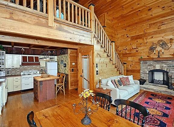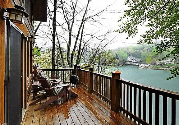 LAKEFRONT ON LAKE LURE LOG CABIN. One level with finished walk-out lower level and loft bedroom. From the antique lead glass front door to the tiled baths, this lakefront log home is full of charming touches. Double levels of wrap-around decking so you can enjoy the lake views. Lake view is toward wide and looks toward the main channel of the lake. Three docks on lake. Adding a boathouse is a possibility. Newly refinished exterior summer 2015. ready-to-move-in.