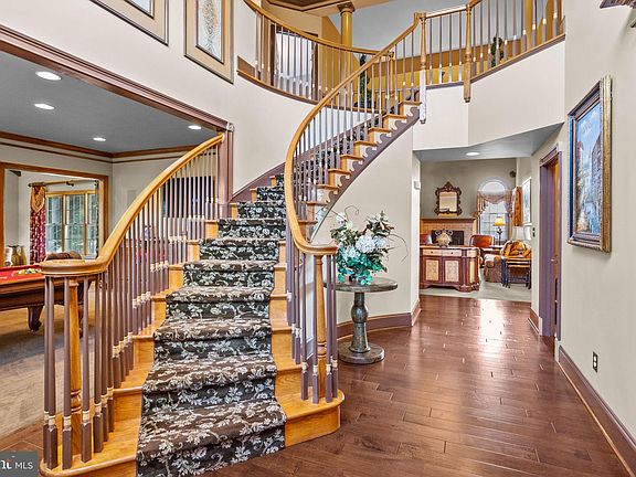 This beautiful home boasts 5 bedrooms and 4.5 bathrooms, located in the sought-after Northampton Hunt. Positioned on a corner lot backing up to an open area, it presents a captivating saltwater heated pool with a hot tub, as well as a paved patio adorned with expansive landscaping. The main floor greets you with a grand two-story foyer with an elegantly curved oak staircase, chair railings, and crown moldings and a balcony overlooking the family room. The gourmet eat-in kitchen features cherry cabinets, granite countertops, and a tiled backsplash. The formal dining room has a tray ceiling. In the family room, a striking vaulted ceiling and palladium windows frame a gas brick fireplace. The formal living room, currently repurposed as a game room, boasts wood paneling, crown moldings, and palladium windows. An inviting conservatory offers oversized palladium windows, and there's also a spacious home office. Upstairs, the second floor includes a luxurious Master Suite with a sitting area, tray ceiling, and a generous walk-in closet equipped with cherry wood built-in organizers. The master bath includes a Jacuzzi, an expanded shower stall with glass doors, and a double vanity. There is a princess suite with its private bathroom and there are two additional roomy bedrooms that share a Jack and Jill bathroom. The lower level features a finished basement with a wet bar, an exercise area, one bedroom, a bonus room that is currently serving as a music room with built-in cabinets, a full bath, and a storage area with bilco doors. Additional features of this exceptional home include hardwood floors, recessed lighting, a dual staircase, a three-car garage, three-zone HVAC, a 75-gallon water heater, fully paid-off solar panels, and irrigation system. Conveniently situated near major roads, shopping, restaurants, and within the award-winning Council Rock School District.