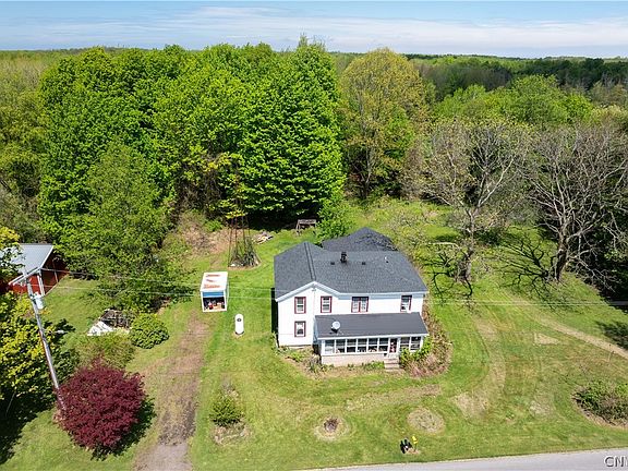 Step into a world of timeless charm with this picturesque homestead nestled on 5 acres of land, surrounded by open fields. Boasting 4 bedrooms plus a BONUS ROOM, 3 full bathrooms, & 1st-floor laundry. There is a primary bedroom with a full bath on the first floor with glass doors leading out to the open porch & a second primary bedroom with a full bath on the second floor! As you enter, you are greeted by the heart of the home, the kitchen, offering ample space for culinary adventures. Adjacent, discover a spacious separate dining room, featuring a cozy pellet stove, exuding an inviting ambiance for memorable meals and celebrations. Enjoy the warmth of a large living room, perfect for gatherings and relaxation. Step outside to enjoy the extensive open porch, ideal for soaking in the serene surroundings and enjoy outdoor entertaining. Indulge in the charm of an enclosed front porch, offering a cozy retreat for quiet moments or lively conversations. Additionally, a large pole barn with electric provides endless possibilities for storage, hobbies, or even conversion into a workshop or studio. With its timeless character, & abundant space, this homestead offers a unique opportunity.
