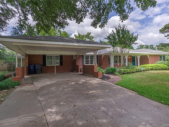 Updated Mid-Century Charmer! Oversized front yard, professional landscaping & large front porch = tons of curb appeal. Large formal living room with decorative fireplace & dining room welcome you into the home. Corain Quartz countertops, stainless steel appliances, substantial cabinet space & a built in dining banquette with storage round out the kitchen. Remote den with wood burning fireplace, surrounded by custom built-in cabinets. Remote master bedroom with an en suite bathroom. Large utility room. Brick & stained concrete floors throughout. Fresh paint throughout. Storage in abundance throughout. Covered patio perfect for entertaining & a climate controlled workshop/she-shed out back. New roof November 2020.