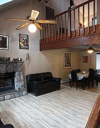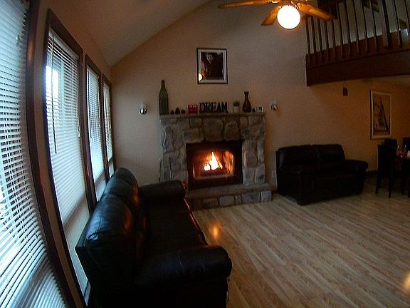 Contact me the owner call my cell 917 687 8162 This house has it all.... 3 bedrooms possibly 4 as room is currently open den. Huge 2 car Garage, Master bedroom on 2nd floor with new modern bath and Jacuzzi for 2 people with granite sink. REAL Hardwood floors thru out the home with cathedral ceiling , SKI lights and fire place with propane log set in Living Room. Other features include 2 car garage & full BASEMENT (semi finished its framed out and electic outlets installed) for more storage room for extra bedroom in basement and washer and dryer Floating deck in front yard and nice back yard with enlosed porch with SKI light and screened lani Huge paved ashpalt driveway 73x 23 you can fit 6 small to medium cars in driveway (No short term rentals allowed ,but you can rent long term 2 months or more 1 year lease etc) Property is large and has a very private setting. Nice landscaping to enjoy to Beautiful Pocono Mountains!! All Located in a gated 24/7 Amenity Filled community that features: Pools, Skiing, Horses, Play Ground, Road Maintenance and More!!! Call For Your Private Viewing Today!!! All this in a community with lots of amenities including free horse back riding, 2 pools in summer and ski lift in winter