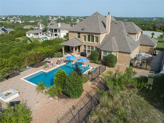 Vacation everyday! Hilltop resort style living. Big Texas sky views from every window. Rest poolside, watch fireworks, or cozy up at the firepit. Catch refreshing breezes under the sunbrella. Beautiful Drees custom on 1.12 ac. 3 car garage. Love the soaring ceilings & fireplace. Spacious bright & open kitchen-2 breakfast bars! Arches, Wood floors, Plantation shutters, recent carpet, soaking tub, walk-in shower, custom closet. Wrought iron fence. Workout area is extra sf. Dripping Springs schools.