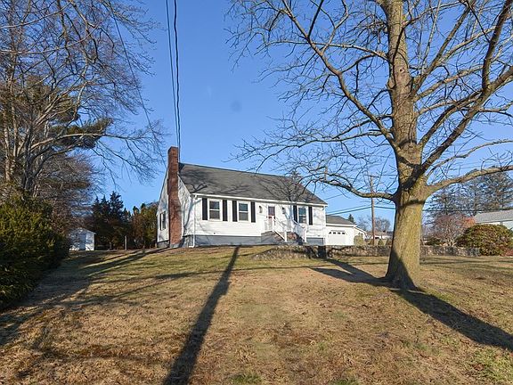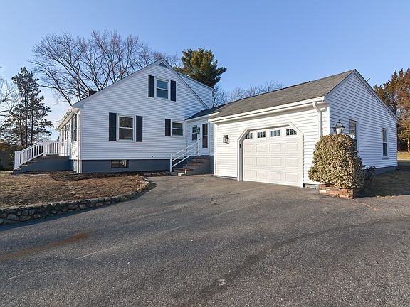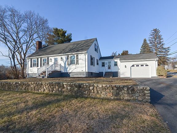 This oversized 3 Bedroom Cape Home is light, bright and offers large rooms, wide hallways, refinished hardwood flooring & is freshly painted from top to bottom. Features include a White Kitchen with stainless appliances & Quartz Counters; a large Living Room with a wood burning fireplace and built in shelving; bonus room off the Kitchen that would be a great Sunroom, Mudroom, or Home Office with a separate entry; a hard to find 1st flr Bedroom; 2 spacious Bedrooms on the 2nd flr with large closets & built-in shelving. The Bathrooms have been refreshed and offer NEW tile flooring and vanities with quartz countertops. The finished lower level offers additional living space with NEW laminate flooring, a Laundry Sink & Washer/Dryer Hookups. The 1 car Garage offers direct access to the Bonus Room The large backyard is level and private with a storage shed. Updated windows, oil tank, and so much more! A great commuter location and just 10 Minutes to the Franklin Train Station. A MUST SEE!