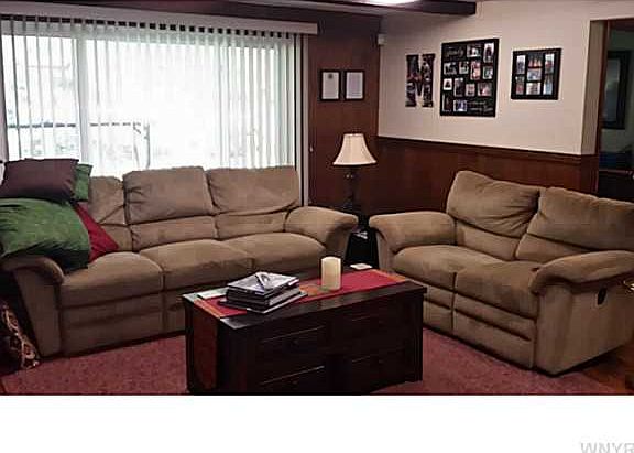 Take a look at this large 2-story home in the Depew School District that lies on a dead-end street in a park-like setting. There are hardwood floors in all bedrooms and throughout the house. The home is heated by solar energy in addition to a boiler system, for added energy efficiency and savings. There is a 2-car garage, along with a patio area and pool to enjoy the warmer months. Half the roof is 3 years old and half is brand new! Don't let this well-maintained home pass you by.