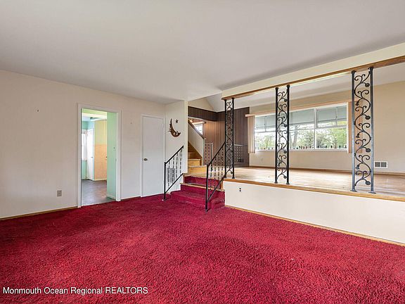 Split-level Hazlet home featuring 3 beds and 1.5 baths. This layout offers open and spacious living areas across three levels. Lower level introduces a large family room with wood burning fireplace, leading to a converted garage with nearby half bath, utility/laundry, and storage. Second level hosts a large living area, extended eat in kitchen/dining room, and large living room with tons of natural light. 3rd level features 3 beds, full bath, and hardwood floors running throughout. Fully fenced in oversized yard rounds out this home. Tons of potential to make this a mother/daughter or In Law suite.