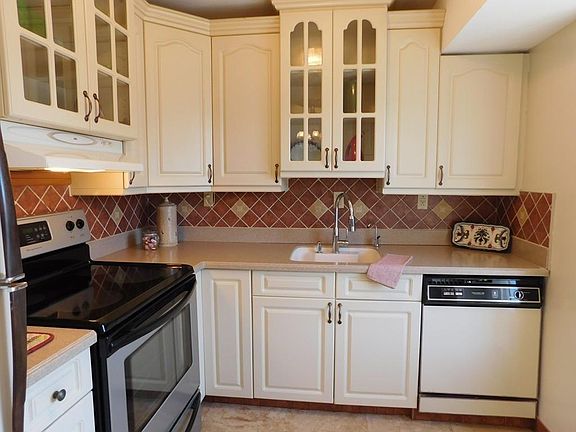 STUNNING & Remodeled one floor living in this Garden Condo at Hampden East- Beautiful newer Kitchen & Bath, brand new carpet....this one should be seen to appreciate! Kitchen has corian counter,ceramic floor & backsplash- redone 4-5yrs ago. Large Livingroom w/ spacious closet & newer 3 pane glass slider to private balcony that overlooks courtyard. Bathroom redone 3-4 yrs ago, GAS Furnace 5+ yrs ago, Electric hot water heater 1 yr old. Appliances - including washer/dryer unit -remain. Ceramic tile entry floor. Hardwood floor in dining area/room. Large master bedroom has 2 closets. Assigned parking #128 is right in front of unit.Has a storage area, too! Enjoy the inground pool and clubhouse area- or go for a stroll around the well maintained complex at the end of your day! Pets allowed, one dog less than 30 lbs (certain breeds excluded) or 2 cats. FHA approved complex. Call right now!