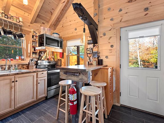 AN AVID OUTDOOR ENTHUSIASTS dream come true! Escape the worries of the world and retreat to the hills of Alexandria to this unique oasis for people who enjoy becoming one with nature. First, there's the 3 bedroom Log Cabin with open floor plan, fully applianced kitchen & cozy living room with cathedral ceiling, wood stove and your very own ROCK CLIMBING WALL.. Complete with a sleeping loft, full bath, 2 bedrooms, a finished basement w/kitchenette & 3/4 bath. Outside you'll find several outbuildings. The Toy Box: a newly constructed 30X50 4 car garage. A Tiny house with kitchen, living room, built-in bunks, shower, urinal & sleeping loft heated with a wood stove. A sugar shack with barrel stove & evaporator to take advantage of the liquid gold provided by the many Maple trees on the property. There's also a storage shed and a few additional sheds on the property. Spend the day exploring your own woods on the 5.1 acre lot located near the end of the road for added peace and quiet. There's a lighted slope you can ski down in the winter, even a year-round babbling brook with bridge with small pool to sit in on a hot day. Direct snowmobile trail access to corridor 11 connecting to the statewide trail system. Close to AMC hiking trails at Mount Cardigan & Wellington State Park on Newfound Lake. Internet Available. Private Road, House cannot be seen from the street. NO DRIVE-BYS PLEASE. Subject to seller securing suitable housing. Offers due by 11/7, 7PM.
