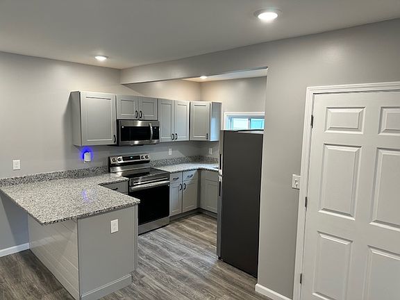 This is a lower unit in a two family home. The property has been completely remodeled. The unit includes an eat in kitchen with a granite countertop peninsula, washer and dryer are provided in the unit, a large double vanity in the spacious bathroom, two bedrooms, a large living space and a separate entrance into an enclosed foyer. There is forced air heat and central air. All of the plumbing, electrical and windows are brand new. Two off street parking spaces are included. Tenant is to pay for gas and electric. Tenant is responsible for gas and electric. Landlord pays for water, garbage, lawn/snow maintenance No pets. No smoking.