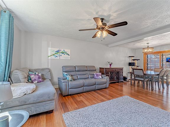 Welcome home to this charming brick ranch featuring 3 bedrooms and 1.5 baths! Step inside to beautifully maintained hardwood floors throughout and an updated kitchen with ample cabinetry, a convenient breakfast bar, and modern finishes. The dining room boasts sliding glass doors that open to a covered back deck—perfect for morning coffee or entertaining. Downstairs, the finished basement offers a spacious game room or cozy family room complete with a gas fireplace, a half bath, and walk-out access to the back patio. Enjoy outdoor living with a private backyard, firepit, and plenty of space to relax. A 2-car garage adds extra storage and convenience. Move-in ready and waiting for you!
