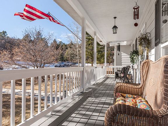 Charming Farmhouse Style Rancher tucked in the trees with Monument Creek meandering through the property and tucked in the mountain backdrop of the historic Pinecrest at Palmer Lake! Over 3,500 sq ft w/ two main level master suites, gorgeous mountain views, an open and inviting floor plan, a walk-out basement, dramatic vaulted ceilings, large windows for tons of natural lighting and fantastic up-close mountain views. Close proximity to the restaurants and shops of Palmer Lake, Pike National Forest and Mt Herman. Rare find! Fantastic outdoor entertaining spaces including a deck overlooking the flowing Monument Creek, main level back deck, basement walk-out patio and the very inviting covered front porch. Beautiful landscaping and mature trees abound. Luxurious master suite with walk-in closet, 5-piece bath including a jetted tub. Open concept kitchen which is perfect for entertaining guests. Corian counters, stone back splash, upgraded cabinetry, stainless steel appliances and breakfast bar. Inviting great room with vaulted ceilings, hardwood floors, a walk-out to the back deck, gas fireplace w/ river rock stone surround. Lower level family room with walk-out to back patio. Large unfinished area that could be easily turned into another bedroom, office or theater room. Quiet cul-de-sac location. Fantastic access to Denver or Colorado Springs via I-25 or HWY-105.