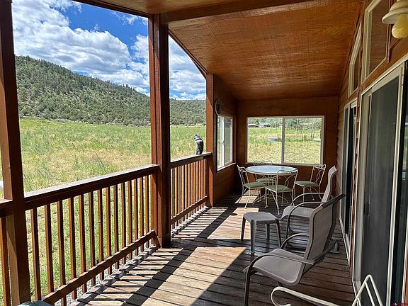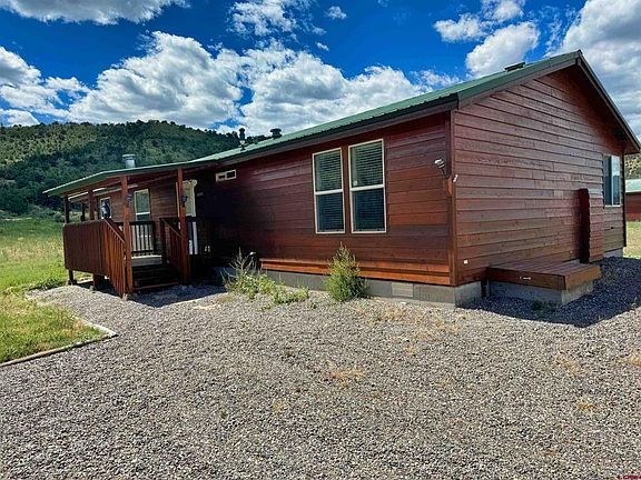 Discover a charming and well-priced home set on 3 expansive acres, just outside the South Fork city limits. This property offers a perfect blend of privacy and convenience, nestled in an area with protective covenants but no HOA. Bordering State Leased land to the south, you’ll enjoy plenty of space and serenity. The home features two bedrooms and two bathrooms, with a spacious open floor plan that seamlessly connects the living, dining, and kitchen areas—all on a single level. A large, oversized two-car detached garage with a concrete floor and double entry garage doors offers ample space for vehicles, four-wheelers, a workshop, or extra storage. Stay cozy year-round with Electric Thermal Storage units, providing energy-efficient heating and reduced electric rates. This property is also located in an area that permits short-term rentals, offering the potential for additional income. Horses are welcome, and the property is just minutes away from millions of acres of public land, the Rio Grande Club golf course, world-class skiing at Wolf Creek, and trophy fly fishing on the Rio Grande River. Most major furnishings, appliances, and many household items are included—making this home move-in ready for your next adventure in the great outdoors!