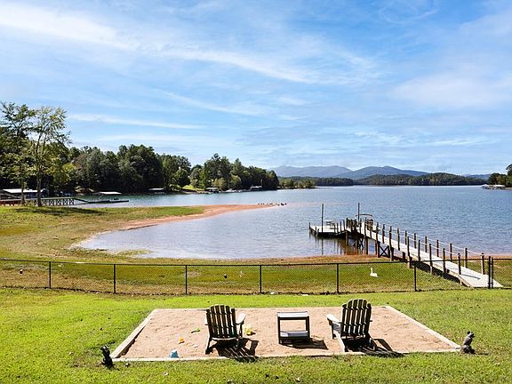 Rare Lake Chatuge Gem with Private Beach & Dock – A Hidden Opportunity This charming lakefront home offers an idyllic lifestyle with unobstructed lake and mountain views. Situated off Pitts Road with a newly paved asphalt driveway, this property is a rare find with great potential for upgrades and personalization. Recent updates include new fencing at the beach and the electrical line being buried to preserve long-range views. The cozy backyard is perfect for a private garden or outdoor living space. Inside, the freshly painted home features a galley kitchen and dining area overlooking the lake, while the main living room boasts custom built-in cabinets, brand-new luxury vinyl flooring, and direct access to a deck with breathtaking views. The primary bedroom includes stunning lake vistas. The sunlit lower level opens to a grassy area with gorgeous water views. It includes a great room, laundry area, second bedroom, and full bath, offering potential as a guest suite, mother-in-law apartment, or income-producing rental, with space to add a kitchenette. New flooring continues throughout this level as well. A gentle slope leads to your private beach and dock, providing easy lake access for boating or relaxing by the water. The finished two-car garage includes a large storage or workshop room next to the private well controls. While the home is move-in ready, the opportunity to enhance and modernize is abundant. Properties like this on Lake Chatuge are increasingly hard to find—don't miss the chance to make it your own and add value with your personal touch. Be sure to view the Video and 3D walk-through