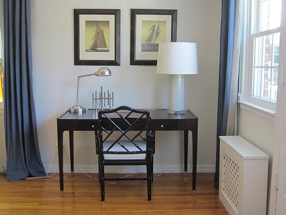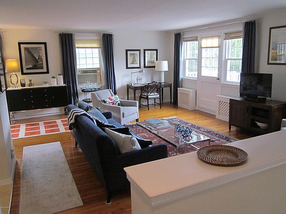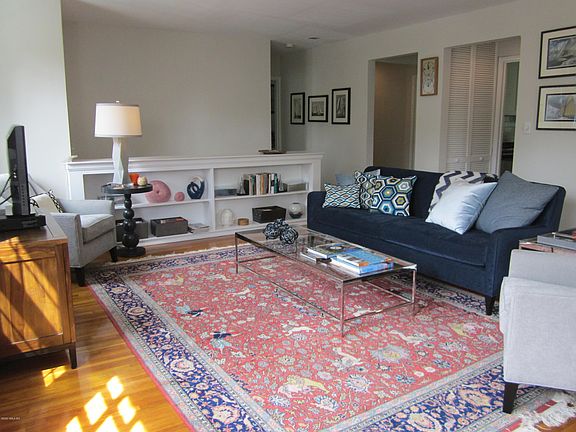 RARE, NEARLY STAND-ALONE 2 BEDROOM, 2 BATH END UNIT WITH 4 EXPOSURES, BASKING IN SUNSHINE AND SEA BREEZES. This wonderful home by a lovely courtyard has 1-level living, open Living & Dining Rooms, white Kitchen w/stainless & granite, Kohler Baths, & balcony for BBQ. Shiny hardwood floors, built-ins, brand new windows, walk-in closet in Master Suite, and even a tool/hobby/home office closet. Great location early in Putnam Park, a verdant 12-acre haven in the heart of town. Around the corner from Whole Foods, walking distance to Greenwich Ave, schools, train, harbor. Pet friendly. Basement storage right by your front door. On-site parking. Garage rental $85/month. Monthly maintenance partly tax deductible and includes gas heat/hot water. Move right in! Owner will consider selling furniture.
