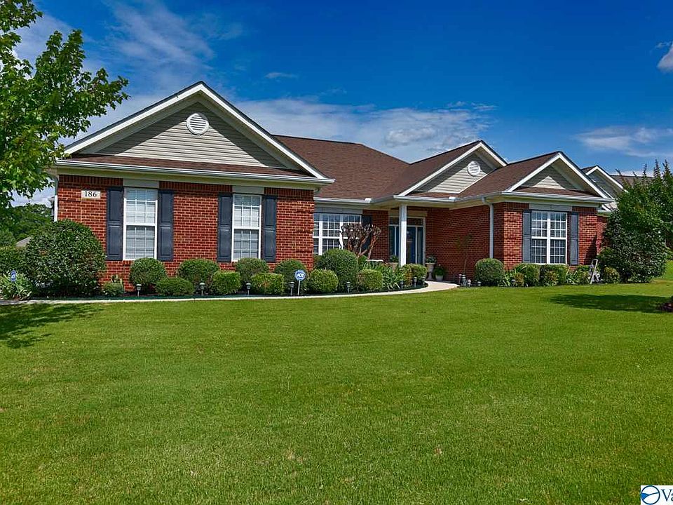 186 Raleigh Way - Beautiful 4 Bedroom/4 Bath, Full Brick Rancher on a .46 Acre Corner lot. 10 Foot Ceilings! Crown Molding! A Wood Burning Fireplace serves as a focal point in the GreatRm with stunning Double Trey Ceiling and door onto extended patio. Formal Dining Room. Eat-In Kitchen has Oven Range, Microwave, Dishwasher, Walk In Pantry, Breakfast Nook & Computer Desk area! Spacious Tiled Laundry Room. 1/2 Bath off Kitchen. Master Suite has a His&Her closet space as well as an GlamBath w/Ceramic Tile, His&Hers Vanity, Whirlpool Tub & Separate Shower. 2nd Bedrm has full bath beside. Large Privacy Fenced (2015) backyard. Security Sys. New Roof (2018)