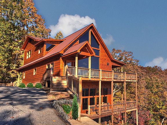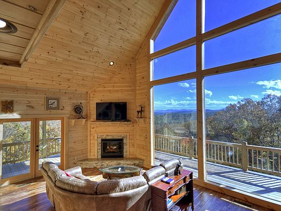 Views Like You've Never Seen!! Brand New Stunning Lodge Style home is perched on generous tract amid towering trees & mountains galore...4 spacious bedrooms + loft, master suite on main & spa style bath with tiled, walk-in shower, custom cabinetry & granite counters throughout, only the best in plumbing/lighting fixtures & systems, sprawling great room boasts soaring ceilings & decorative beams, massive stone fireplace, stainless appliances, three levels of relaxing porches & fabulous outdoor fireplace underway, upper level features oversize loft & two lovely guest rooms with private balconies, full finished terrace level w/guest quarters, movie room & wetbar, large laundry room, half bath & pantry area, abundance of storage, ginormous glass to take in view, concrete circle drive with easy access, natural low maintenance landscaping for ulitmate curb appeal & tastefully decorated for a turn key purchase...truly a showcase home!
