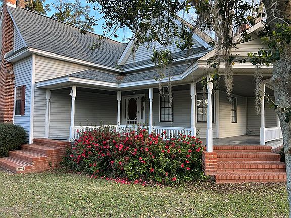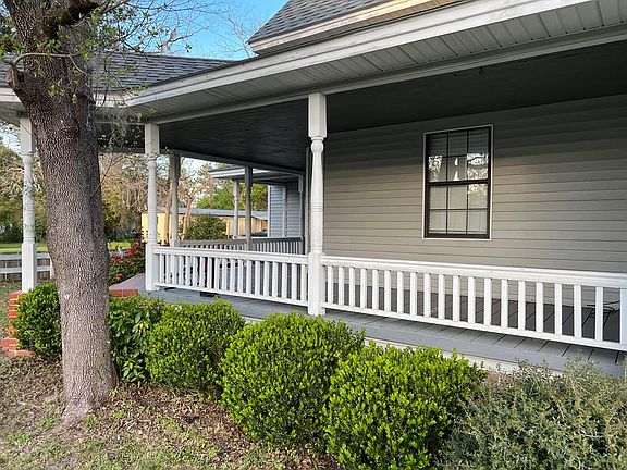 Charming and Beautiful describes this turn of the century home with picket fencing and wrap around porch. Located on 1.10 acres that is completely fenced, this home has lovely landscaping with mature trees and shrubs which include satsuma, pear and pecan trees. A large work shed, storage room with a lean-to can accommodate vehicles or boats. The home features 3 bedrooms 1 bathroom, a spacious living room and kitchen. The kitchen appliances include stainless steel stove, dishwasher and refrigerator with lots of cabinets and countertops. Recent renovations include, new carpet, interior walls painted, light fixtures, with roof and H/AC installed in 2020, Handicap Accessible : Termite Bond with Advanced Bait System recently installed. Call Today and set up a showing. MOVE -IN READY Make this adorable house your forever home.