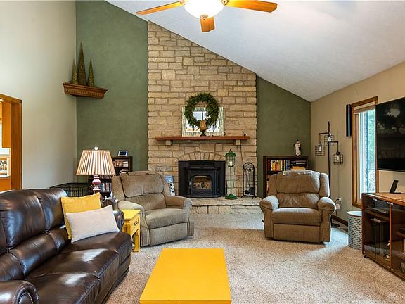 Beautiful 3 bedroom 3 bathroom home sitting on a private 3.27 acre lot. The bedrooms are located upstairs , all with walk-in closets. All bathrooms have been updated. Entering into the great room you will see 18ft ceilings and beautiful stone fireplace with a wood pellet insert. Kitchen had maple hardwood flooring. A 3 season room is located from the kitchen going outside to a large patio. A full partially finished basement features a family room, an extra room for a home office or craft room, workshop area and plenty of storage. Owners have taken tremendous care of this home.