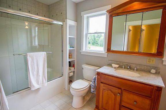 Located in a neighborhood of beautiful homes with large acreage and dazzling views, A Little Bit of Heaven does not disappoint. This tidy, well-built Cape has an open floor plan that is great for entertaining. Expert craftsmanship is evident throughout the home. The color palette is modern and subtle with contrasting crisp white trim. The kitchen has granite countertops and stainless steel appliances. Custom windows bring in light from every direction. There is a first floor bedroom/den with nearby bath. A covered deck along the north side overlooks a spring fed pond, which is also accessible from the lower level family room. Two large upstairs bedrooms have over-sized closets. The first level hardwood floors are warmed by radiant heat and the home boasts an Energy Star rating. The front porch is quintessential New England farmhouse. This is an easy-living home, close to skiing, hiking, snowmobiling, fishing, swimming in the White River and all the natural beauty of Vermont.