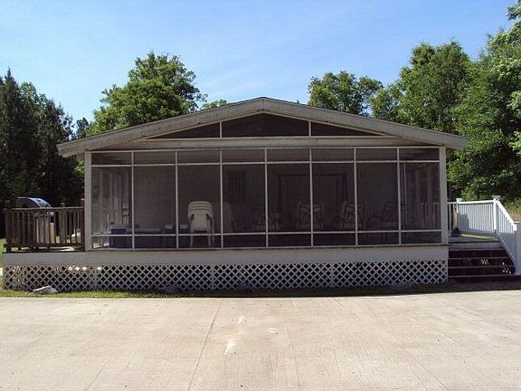 Secluded Manufactured home deeded as real property. Has a 12 ft. x 27 foot screen porch on north end with small deck off porch.Large deck on south end. Includes a nice carport by the house and a detached metal building about 50 x 90 with about 16 foot wide shelters off 3 sides. Concrete floor except under 2 of the 3 shelters. Have collector cars? Nice place to play with them and keep them looking good. Need 24 hours to show. Friend staying in the house ehen owner is away.