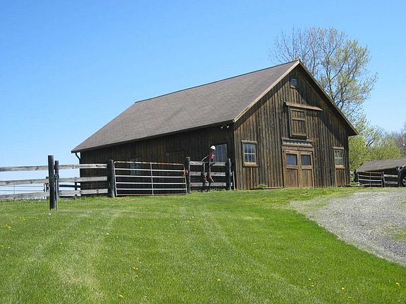 Horse Farm on 27+ open acres with a 30 X 40 two story Barn with box stalls, heated tack room and approx 5+ acres in paddocks. The three bedroom, two bath home has an open Living room, Dining area and Kitchen with a sunny interior. There are solar panels to help cut electrical costs. Presently there are 11+/- acres being farmed which provides an Ag exemption on the land taxes. The upper field would make for a great building site with far reaching views. Lots of potential.