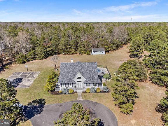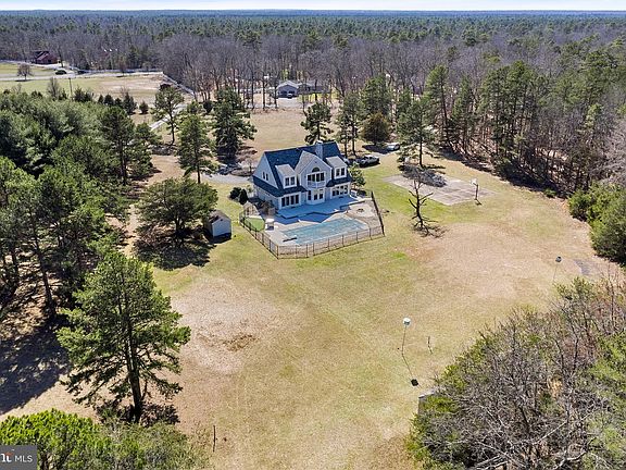 PRICE JUST REDUCED! SCHEDULE YOUR SHOWING TODAY! Discover this remarkable 4-bedroom, 3.5-bathroom Custom Expanded Cape Cod nestled on an EXPANSIVE 5.42-ACRE LOT of picturesque land! Ideal for animal lovers or those craving a rural retreat, the vast grounds provide ample room for pets to roam or for those seeking tranquility and privacy! The property includes a large barn/garage suitable for horses or other animals, and it backs onto a serene wooded area. The large barn/garage has electricity, and there are two water pumps as well located in front of the barn. The exterior of the property is impressive, featuring a long winding paved driveway leading to a circular front driveway. A 6-foot wide wrap-around front deck with Trex decking, an in-ground pool, a full-size basketball court, and a shed (with electricity) also contribute to the very expansive outdoor space. Upon entering, the home welcomes you with gleaming hardwood floors that span the first and second floors, a wonderful open floor plan, and 9-foot ceilings complemented by newer windows throughout the first floor. Boasting not one, but two primary bedroom suites, this home offers ample space and versatility. The main level features one of the primary bedroom suites, recessed lighting, newer light fixtures, a sizable family room with a charming wood-burning fireplace, and a dining area off the kitchen boasting a 12-foot sliding glass door that floods the space with natural light, offering picturesque views of the backyard. The neutral decor throughout enhances the home's elegance. The recently updated kitchen boasts white Brookhaven cabinets, granite countertops, stainless steel appliances, a tile backsplash, a large center island, and three expansive windows over the sink. The large primary first floor suite, which could also function as a guest room or office, features a new carpet, 12 foot sliding glass doors to the back deck, a very large closet, and an updated full bathroom. A laundry room, and an updated powder room complete the first floor. Shadow box moldings adorn the open stairway leading to the second floor, where gleaming hardwood floors continue to grace the space. Upstairs you will find the second primary bedroom suite which features cathedral ceilings, a spacious closet, a large full bathroom, and a private balcony with a 12-foot sliding glass door overlooking the backyard oasis. Two additional large bedrooms on the second floor share an updated full bathroom. The fully finished basement offers high ceilings and versatile spaces perfect for a workout/exercise room, game room, or office. Noteworthy updates include a new septic field installed in July 2022, a newer roof (installed in 2020), new sand in the pool filter (to last for up to 10 years), newer air conditioner (installed 2 years ago), and newer oil furnace (approximately 8 years old). Gas lines have been run to the house, providing the option to add any gas appliances or system to the home. A sprinkler system maintains the lush landscaping, while a vast deck at the rear of the home overlooks the in-ground pool with a newer pump. Conveniently located close to the shore and to Philadelphia, this home is a true gem that must be seen to be fully appreciated. Don’t miss the opportunity to make this exceptional property your own!
