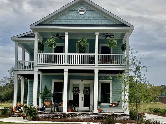 186 Spreading Oak Drive is Southern Living at its finest. Nestled in the back of Litchfield Plantation, it is a Charleston style home with water views and double porches in front and sides of the home. The great room features custom built ins and light fixtures. Natural light pours in from the over-sized windows during the day. Master suites with walk-in closets are on the first and second floor. Both master bathrooms feature waterfall shower systems. There is a designated laundry room. The amenities of Litchfield Plantation include: beach house access on Pawleys Island beach, swimming pool, marina, and 24 hour guard gate.