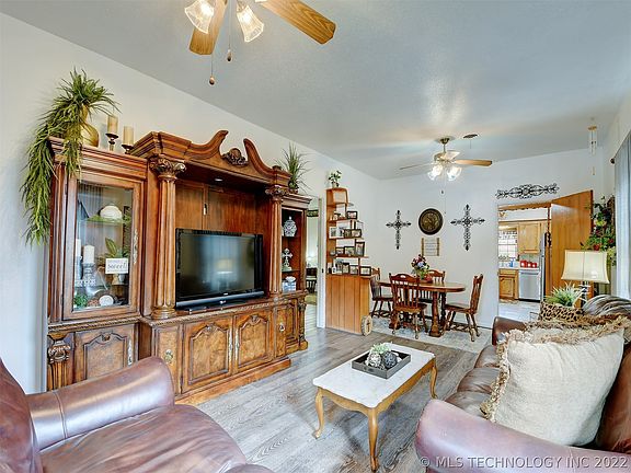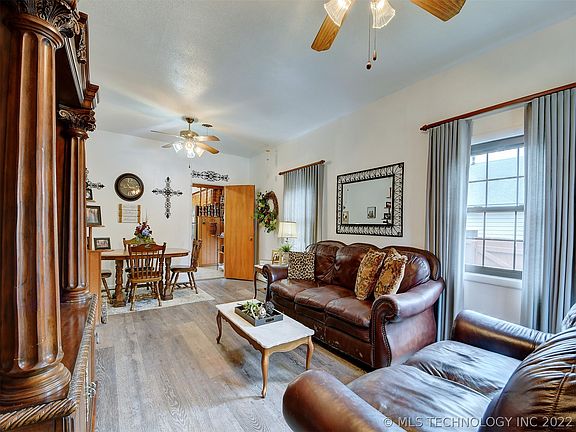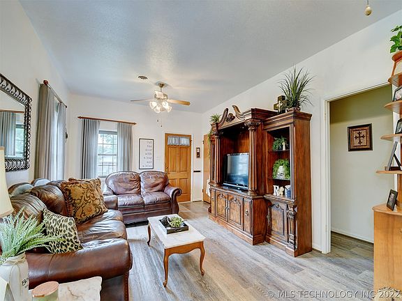 Quiet, small-town living can be yours with this cute home. This home features 3 bedrooms, 2 bathrooms, a sunroom and two flexible living areas. Open kitchen with lots of cabinet space and all appliances stay. Sitting area off the Master bedroom could be an office, nursery, or another living room. The sunroom would make a great playroom or casual entertainment space. The backyard is very large, has a storage shed, as well as a privacy fence. A large covered carport rounds out this cute family home.