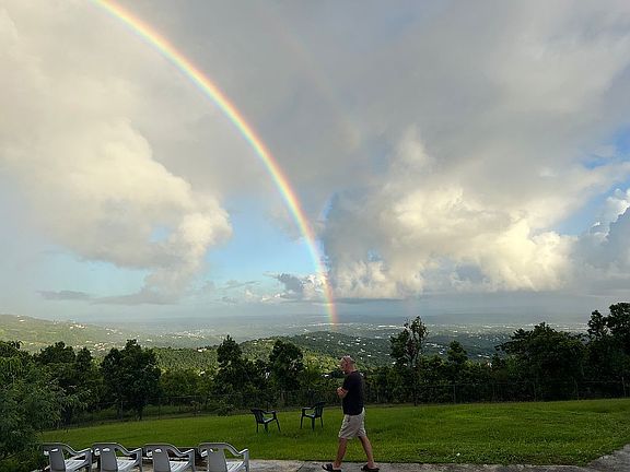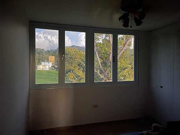 180 DEGREE VIEWS of the valley below (clear out to the ocean), will be yours on this dog friendly one acre gated property in the El Yunque Rain Forest. Twenty five minutes from the San Juan airport (SJU). A 15-20 minute - on a country road, to world class golf courses, and luxury ocean front resorts. Closer to home, are water falls, pools, and hiking trails a short drive or even walking distance. The water has been called the purest in the the US park system. (healing, mineral filled, drinkable water). Seven minutes down the street, located in the Rain Forests premier "Hacienda Siesta Alegre Hotel" a gorgeous 100 acre horse ranch. The house is available September 1st. at $4,500 a month. Furnished (with new furnishings) $300 more a month (not shown in pictures). Weather is comfortable (68-80 year round). Cooler (60-70) at night. Ocean breezes abound. Rain is often short & strong (20 minutes - 2 hours) breaking to blue skies and white puffy clouds. A special "back to nature" experience you and the family will never forget. Tenant pays utilities, internet. & gardener. If you want mail for a nominal fee you can open a PO box down the hill. There is no Postal delivery. Also there is no trash pick up. Tenant must cart trash bags out to a dumpster. Monthly rent shall be paid in 6 months increments Thanks for your interest! M.