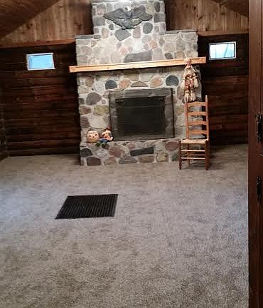 A Charming Log cabin nestled on a hill near the woods. A massive Fireplace to chase away the chill on a cold night.New carpet.Several outbuildings large and small. Perfect for a workshop or hobby farm.Take a walk down memory lane.The woods are wound with walking trails and has an array of wildlife.