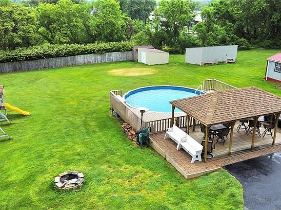 Welcome to 186 State St! This spacious cape cod features 3 bedrooms and 2 1/2 baths! Master on upper level includes full updated bath and walk-in closet! Second bedroom on main features its own living room/office addition! Relax on the wooden deck that overlooks back yard! Perfect home for entertaining with finished game room in basement! Modern bar, gas fireplace & nature stone flooring recently updated! Additional storage room & laundry area in basement provides plenty of extra space! Stunning gazebo in rear of home over looks the above ground pool and yard! This home is a must-see! Seller will provide CINCH home warranty at closing for buyer! Home is conveniently located minutes to I-70!