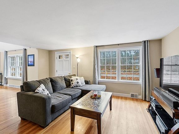 Really charming contemporary cape on a quiet tree lined street. Solidly built with hardwood floors, this home features a spacious living room and a big dining room with cathedral ceiling and fireplace. Two good bedrooms and a bath on the first floor. A huge 3 season sunroom and 2 decks overlook a lovely backyard! The kitchen is very usable, but could be updated. Upstairs has an additional bedroom and an office area. Walk out basement has a wonderful workshop and connects to a good sized 2 car garage. New septic for 3 bedrooms installed in 2013. Located in a very nice rural area, but just 10 minutes to the commuter rail, Rte. 2 or shopping.