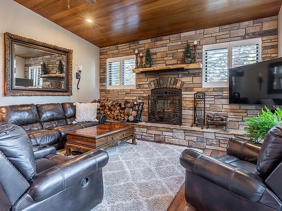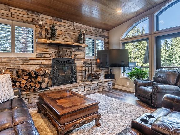 Sitting on a rare half-acre estate lot this traditional Mammoth home offers approximately 2375 square feet of living space with 4 bedrooms & 3.5 bathrooms and a large flex room that could be used as a second living area, game room, bunk room, or office. The home has been updated from head to toe with beautiful finishes throughout. main living area upstairs offering an open floor plan, vaulted ceilings, and all new Anderson windows looking out to the large main deck. The primary bedroom has a private deck overlooking the back yard with a very private feel. Downstairs offers 3 bedrooms, 2.5 bathrooms, the den, and direct access from the garage. Multiple outdoor entertaining spaces in the summer, a private hot tub on the back deck, and ample outdoor parking plus the two-car garage. Tamarack is a quiet street in Old Mammoth with a friendly neighborhood vibe and great access to the Snowcreek Meadow, Mammoth Rock Trail, and up to the Lakes Basin in the summer.