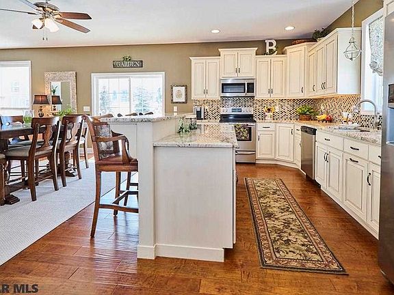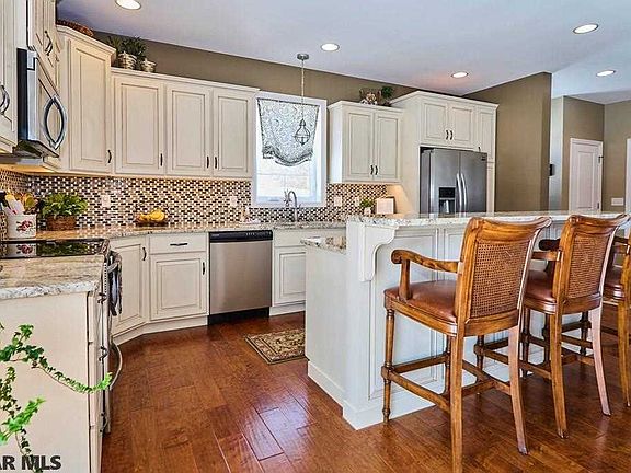 Fall in love the moment you walk through the door and take in the quality details throughout this impressive home! You'll be instantly welcomed by the gorgeous Brazilian hardwood floors that continue into the open first floor showcasing an elegant custom kitchen with whitewash painted cabinets, tasteful granite, tile backsplash, oversized seated island with full of light dining area. Great outdoor entertaining under the covered patio. Appreciate the dramatic 9'ceilings while you and guests cozy up to the inviting corner fireplace featured in the spacious family room with a wall of windows. Retreat to your spacious owner's suite with spa-like bath that includes soaking tub, shower and double bowl granite vanity and huge walk-in closet. 3 additional nice sized bedrooms. If desired, you could convert the first-floor office to a 5th bedroom as it has a closet and a nearby full bath. You'll cherish the finished basement thoughtfully designed to include an expansive entertaining area complete with coffee bar, workout area and adjacent half bath. There's so much more to see! Hurry, before it's gone!