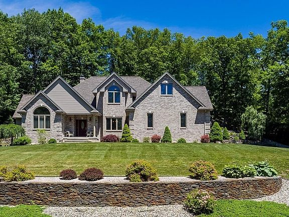 No detail has been overlooked in this spectacular quality custom built home! Stunning two-story living room with floor to ceiling brick fireplace with custom cherry built-ins. Open and expansive kitchen w/granite counters and a bar area. The serene and luxurious first floor master bedroom boasts tray and cathedral ceilings, 2 large walk-in closets and a glorious custom bath! 2 additional bedrooms, another full bath and a bonus room (perfect for another guest room or play room) complete the second floor. Large spacious finished basement with another brick fireplace adds to the square footage of this quality built home. High Efficiency HydroAir Buderus Heating System, 40 year shingles and updated AC unit. Extensive custom rock walls, outdoor paver patio and walkways, 3 car garage, irrigation system and professional landscape are just a few of the exterior extras of this stately brick home. Schedule a showing today and expect to be impressed!