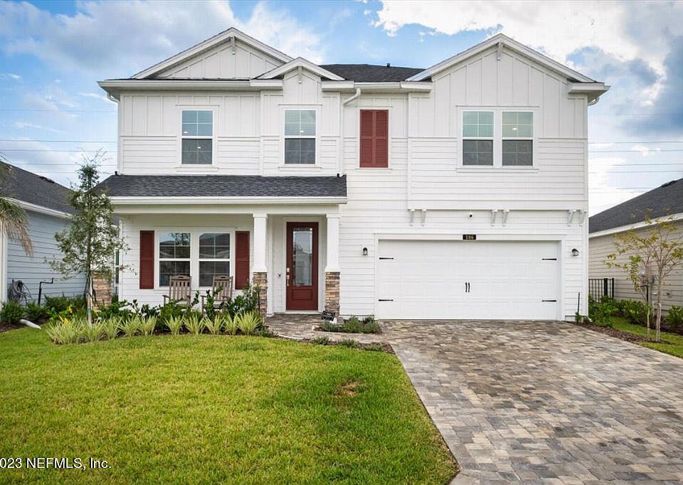 Enjoy all day sun with rear southern exposure in this beautiful Brio floor plan home with 4 beds plus a den and a loft. Upgraded custom built in closets in pantry and master closet. Water softener, backyard fenced for privacy, upgraded ceiling lights in every room, gutters, and new high end 39DB kitchenaide dishwasher. Plenty of room for a pool in the backyard! No CDD and A rated schools in St. John's county. Amenities include pools, dog parks, tennis, pickleball, and miles of multi path trails.